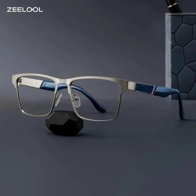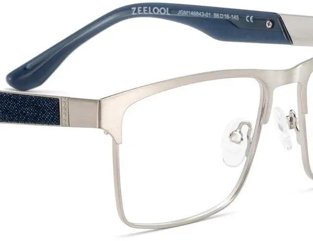 Zeelool Blue Light Glasses for Men Metal Rectangle Eyeglasses JGM146843-01 Sliver