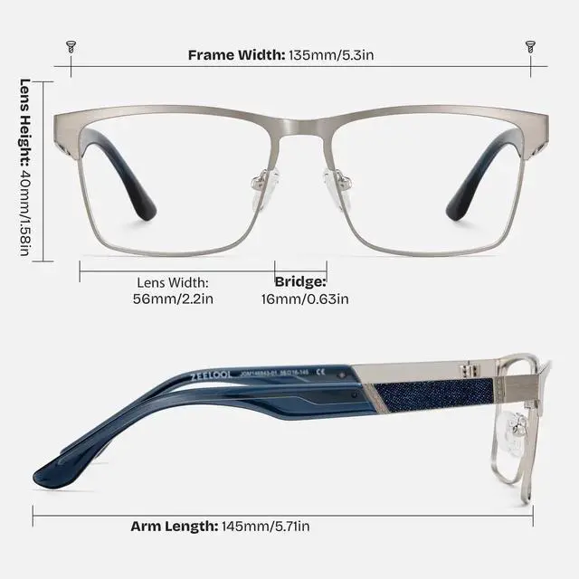 Rectangular Men Glasses: made of metal material that is durable and wear-resistant, and relatively lightweight, can be worn for a long time