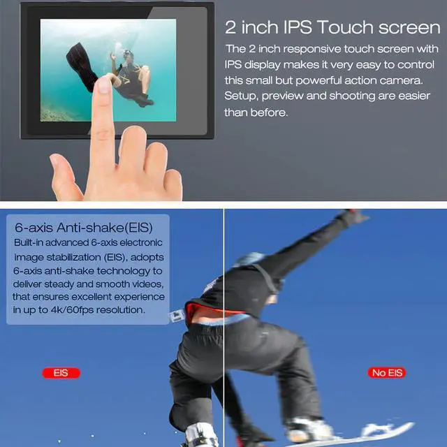 A water resistant casing that allows you to film fascinating water sports; water resistant up to 30 meters under water.