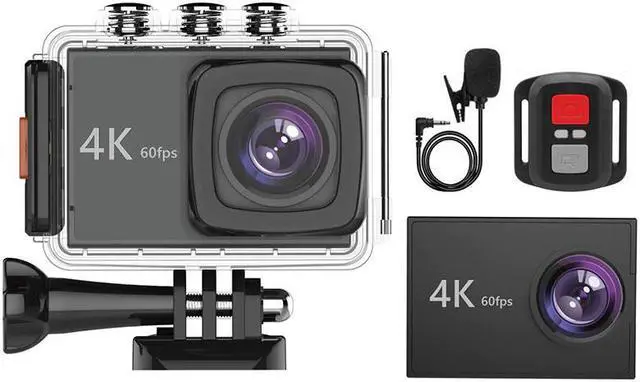 Records 4K/60fps, 4K/30fps, 2.7K/60fps, 2.7K/30fps, 1080P/120fps, 720P/240fps video and 20MP ie, you can capture high-quality full HD footages.SUPERB IE STABLIZATIONBuilt-in Advanced Electronic Ie Stabilization (EIS), your V50 Elite action camera predicts your movements and corrects for camera shake to deliver insanely smooth footage.OPTIONAL VIEW ANGLEYou can adjust the view angle of this action camera according to your needs between Wide, Medium and Narrow. This sports camera also has the distortion calibration feature, which offers ie distortion improvements.WATERPROOF CAMERA UP TO 131FTEquipped the improved waterproof case, this underwater camera can deep dive up to 131 feet, ready to capture all details of your adventures. Perfect for water sports such as swimming, surfing, diving, snorkeling, etc.Colour: BlackMaterial: ABSPackage Contents:1 * action camera1 * base screw1 * waterproof shell base1 * J-type waterproof shell base1 * tripod mount1 * Tripod Male1 * bike rack1 * 90 degree short shaft1 * 90 degree long shaft1 * 180 degree shaft1 * helmet base (with teeth)1 * helmet base (without teeth)2 * spare film1 * microphone2 * Nylon Sticker straps2 * machine strap1 * USB cable4 * cable ties1 * Wire rope1 * cleaning cloth1 * camera protection bag1 * remote control strap1 * remote control1 * 1200mAh battery1 * manualOnly the above package content, other products are not included.Note: Light shooting and different displays may cause the color of the item in the picture a little different from the real thing. The measurement allowed error is +/- 1-3cm.