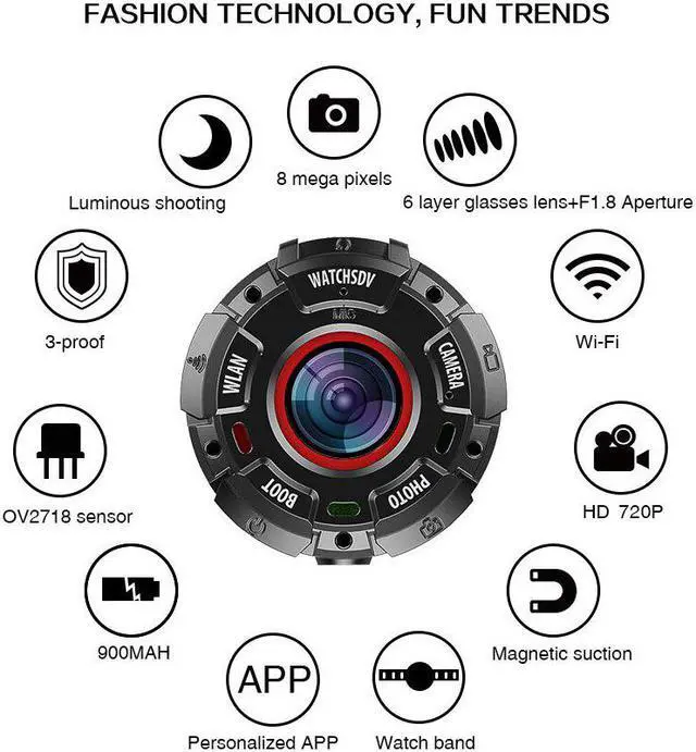 Mini Sport Action Camera HD1080P WiFi Waterproof 30M DV 6 pcs wide-angle lenses Night Version Shooting Smart Watch CameraProduct Features: