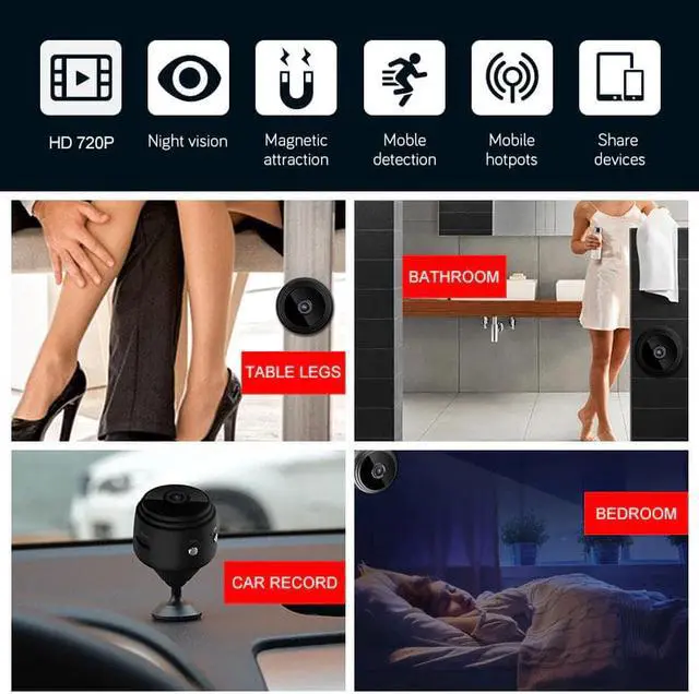 This small camera bathroom has a built-in magnet, can work well with any iron material, easily place anywhere. This small camera with a rigid charging cable and magic base, when charging while recording, you can manually rotate the recording angle 360 degrees.