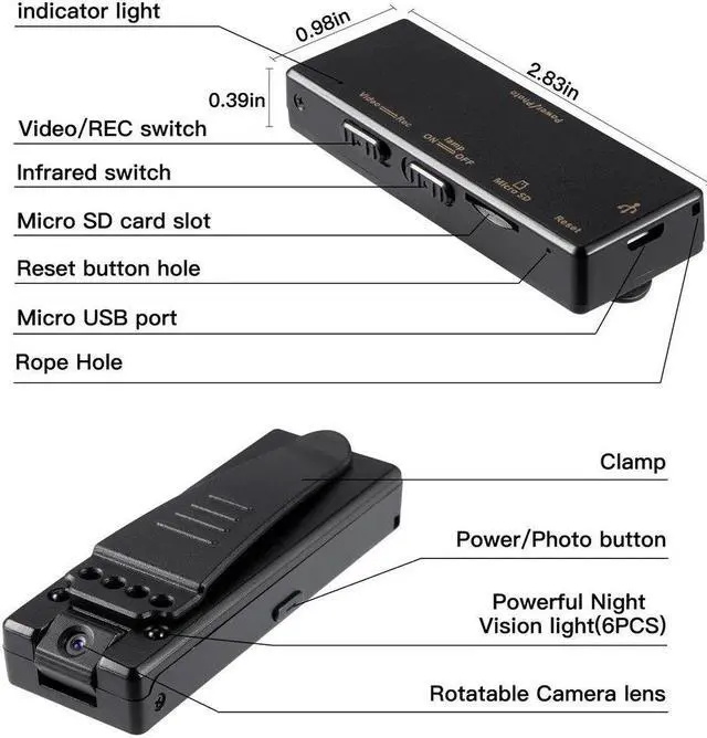 2. Strong Function: This mini camera Supports real-time video recording, night vision, snapshot. world's smallest video camera with 90 degree wide angle lens.