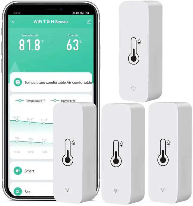 SMART WIFI TEMPERATURE SENSOR: Connecting with 2.4 GHz WiFi, you can remotely monitor the WIFI Thermometer Hygrometer. Smart temperature sensor supports App Notification Alert, View History Records,Temp Humidity Graphs, °F/°C Reading and Intelligent linkage functions