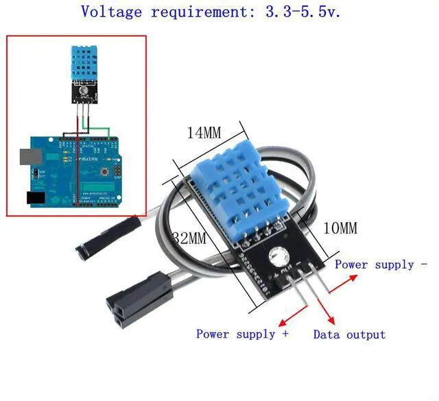 DHT22: it is suitable for connection to all standard boards Compatible with Arduino, RN-Control, Compatible with Raspberry Pi and all other microcontrollers.