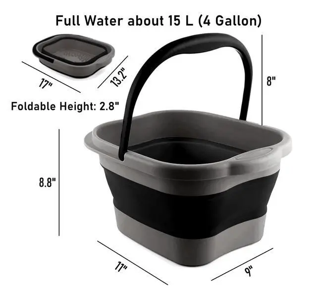 - A collapsible foot spa basin, not like traditional foot bath basin as big and heavy. Light weight and compact size when folding. While stretch and pour into water, it can stand upright like water bucket to soak your feet.