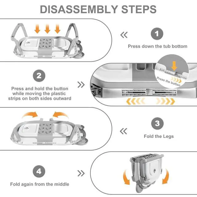 The collapsible baby bathtub is designed to accompany your baby from newborn to toddler, cute and practical. The off-floor drain features an easy-pull rubber plug to simplify draining without moving the tub. It allows baby to have a comfortable and enjoyable bath. Product Name: Collapsible Baby Bathtub. Product material: PP+TPE. Unfolded dimensions: 26.3x16.5x8.26 inches. Product color: grey. Products include: 1*collapsible baby bathtub, 1*floating mat. Features: 1. The baby bath tub for newborn adopts an enlarged and widened space design, which is stable and has a strong load-bearing capacity. It allows the baby to enjoy a happy bathing time. 2. This baby bathtub with thermometer has an intelligent temperature sensing device, which can display the temperature in real time to prevent the baby from being scalded or catching cold. 3. This unique infant tub makes a thoughtful gift for any expecting couple. It is suitable for babies from 0-36 months. Please use under adult supervision. Do not leave the baby alone to avoid drowning.