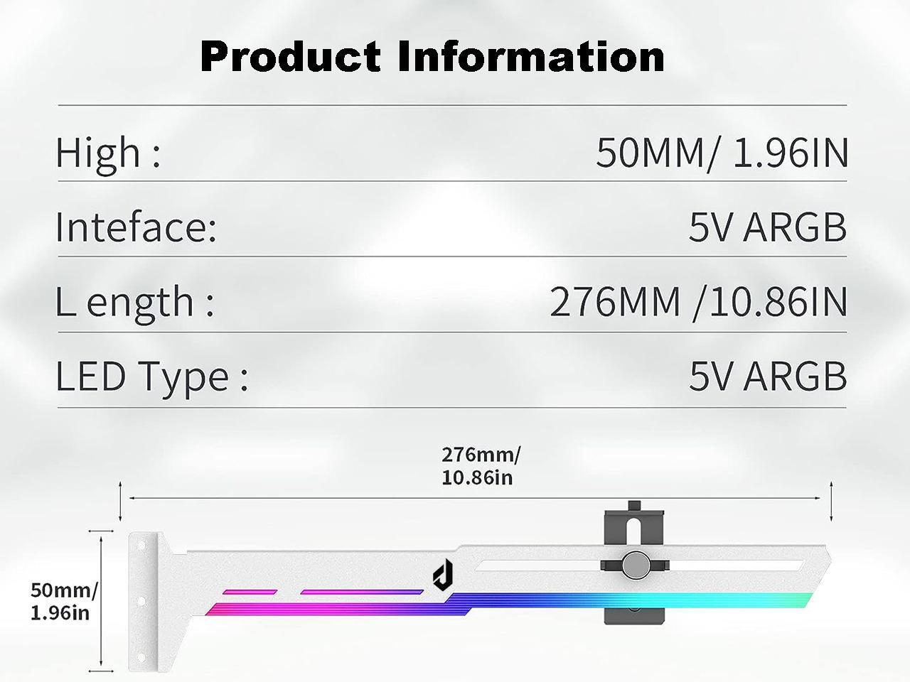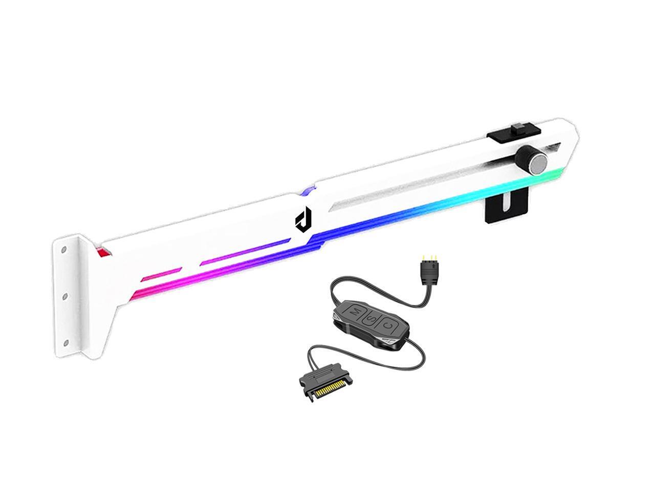 Graphics Card GPU Brace Support Video Card Sag Holder/Holster Bracket with 5V ARGB Strip,Built in SATA Powered ARGB Automatic Controller ,Length and Height Adjustable, Mounting by 3 PCI,White