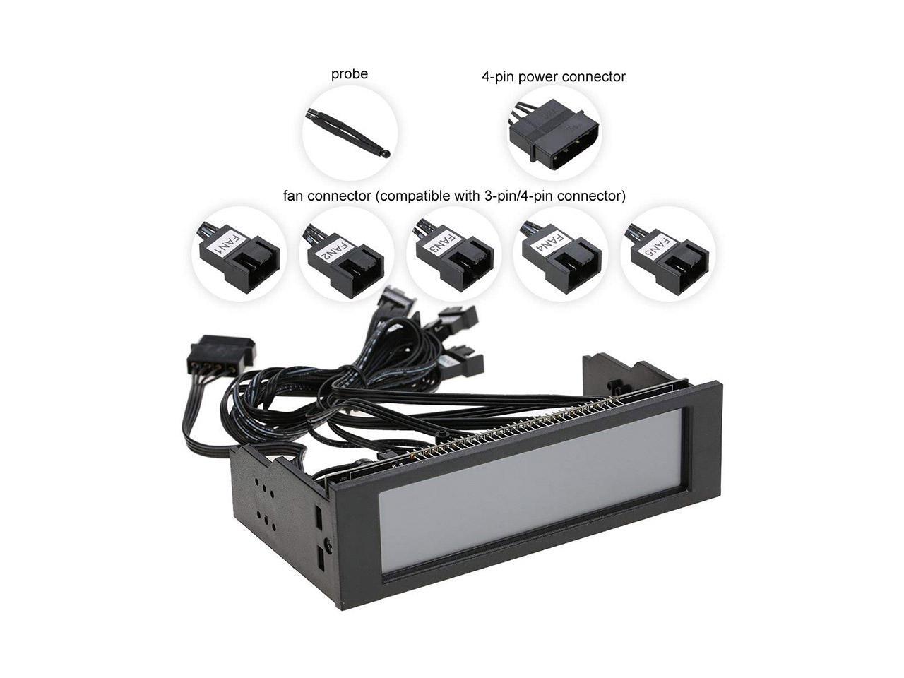 ALMM STW Touch Screen 5.25 inch 5 Way Fans Speed Controller PC Computer Cooling Fan Controller Temperature Controller Front Panel Date Time Temperature Display Drive Bay (Black)