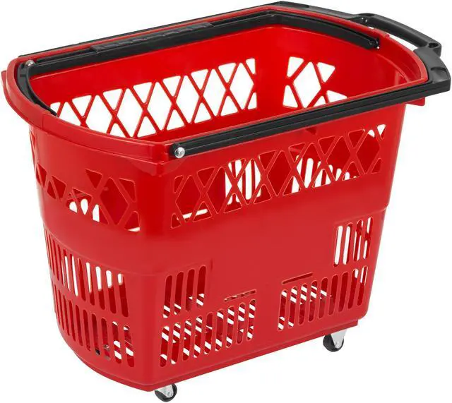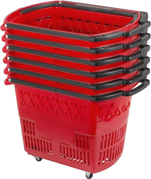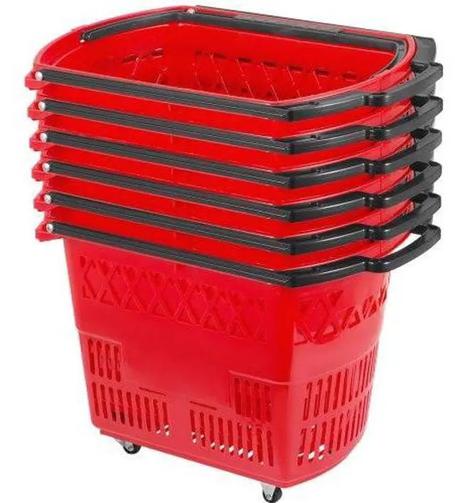 6pcs Red Shopping Basket 21x13.2x14.3in Plastic Supermarket Metal Handles Hot