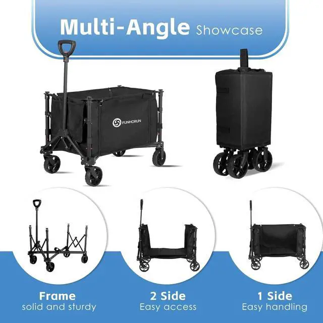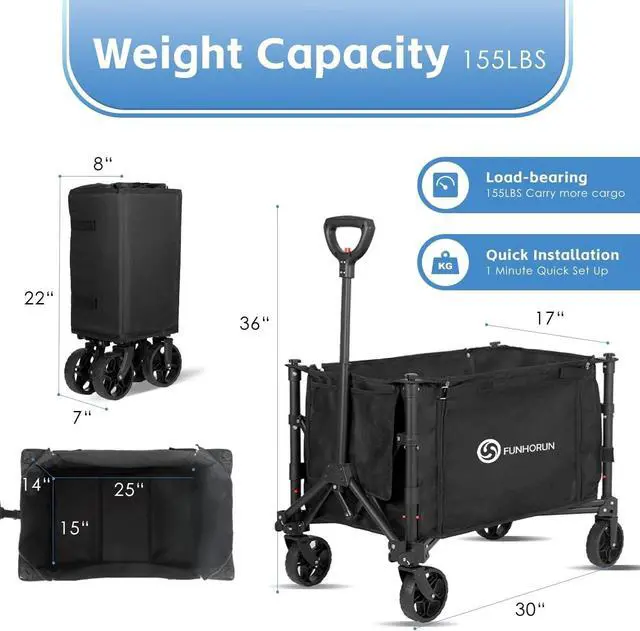 Heavy Duty Collapsible Wagon Cart Foldable Utility Wagon for Camping, Beach & Grocery