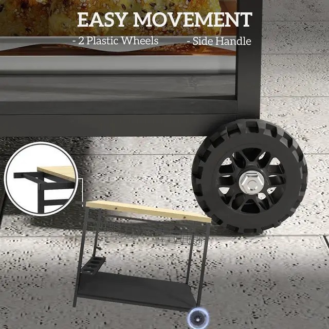Easy Mobility: With two smooth-rolling directional wood casters and a convenient side handle, you can quickly move the outdoor serving cart from room to room.