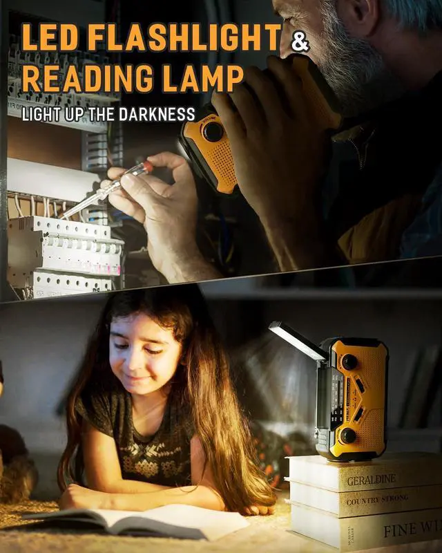 8. SOS mode: switch to SOS mode, the radio will sound an alarm and twinkling lights to draw others attention.