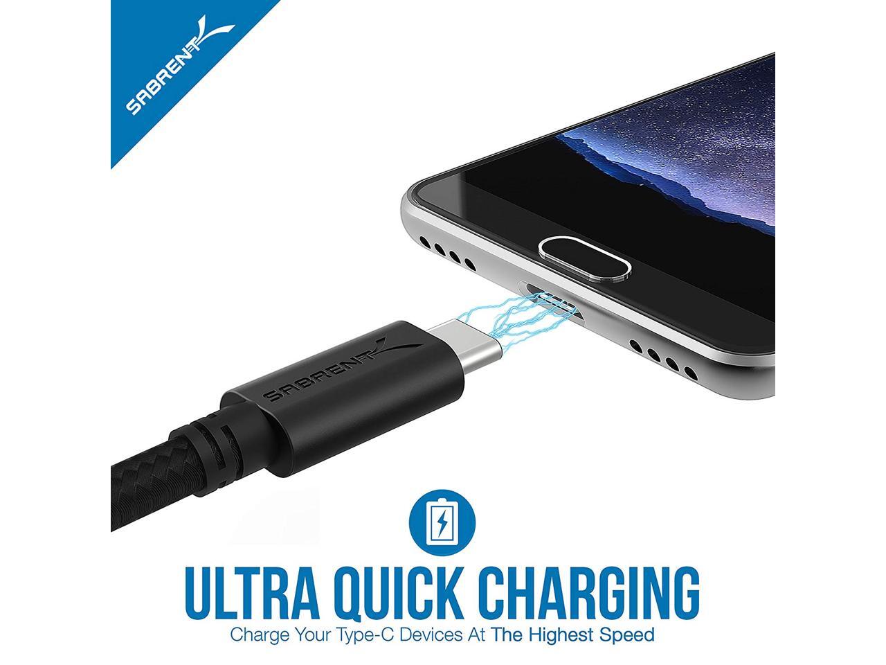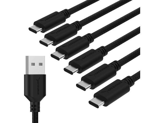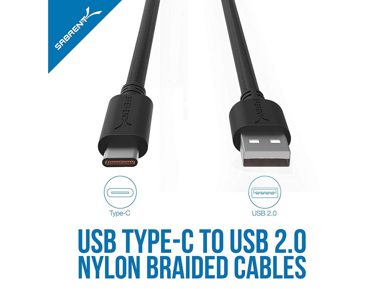 - Ideal for charging Android phones and tablets or connecting PC peripherals such as hard drives, printers, and moreDurable Nylon Braided design avoids damage from daily crinkles and bendingUSB 2.0 Cable - USB A to USB type-C; Supports 480-Mbps transmission speedNO MORE SEARCHING FOR THE CHARGING USB CABLE Stock up and save with this set of six high quality type-C cable packWhat You Get: Sabrent 6-Pack 6ft USB type-C Cables