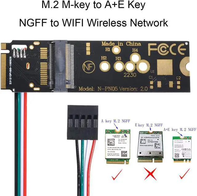 Wireless NGFF A/E-Key WiFi Card to M.2 NGFF Key-M NVME SSD Adapter for AX200 Wifi 6 Bluetooth 5.1