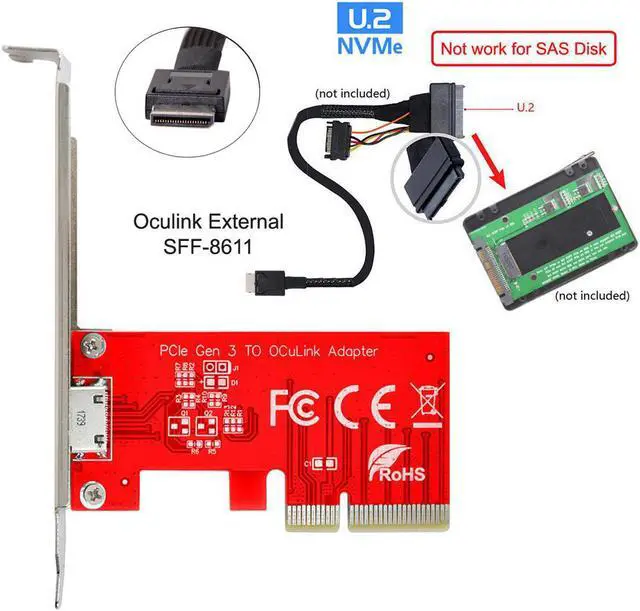 PCI-E 3.0 Express 4.0 x4 to Oculink SFF-8612 SFF-8611 Host Adapter for PCIe SSD with Bracket