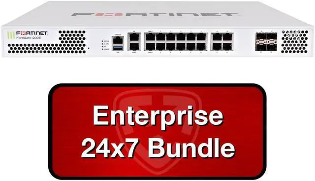 Fortinet FortiGate-200E / FG-200E Next Gen Security Appliance with 3 Years 24x7 Forticare and FortiGuard Enterprise Bundle including: NGFW Application Control and IPS, Web Filtering, FortiSandbox Cloud, AntiVirus, Mobile Security, IP & Domain Reputation, AntiSpam, core FortiCare security services