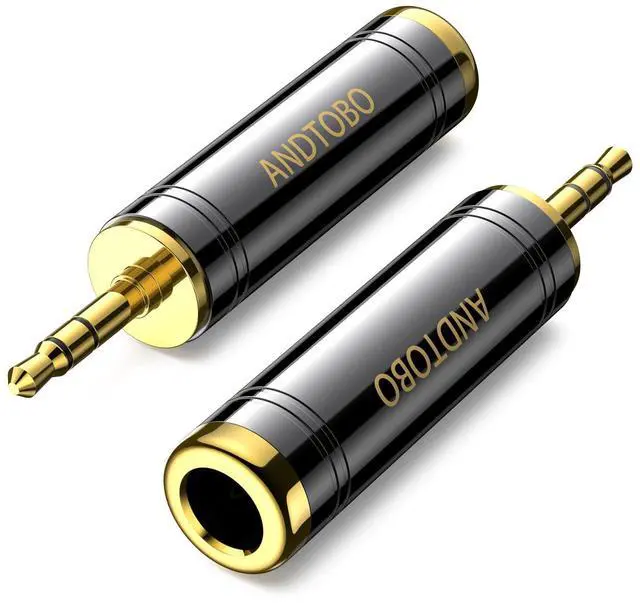 1/4'' to 3.5 mm Stereo Pure Copper Headphone Adapter, 3.5 mm(1/8'') Plug Male to 6.35 mm (1/4'') Jack Female Stereo Adapter for Headphone, Amp Adapter, Black 2-Pack