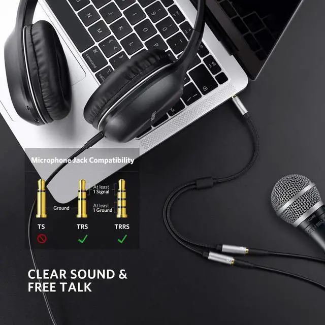 Durable & Flexible: This headphone mic splitter is made of high-quality soft TPE material for maximum flexibility, making movement or adjustment easy. The nylon braided design protects the cable from scratches or damage. The copper core provides maximum conductivity and durability, and the gold-plated connectors resist corrosion and ensure optimum sound quality.