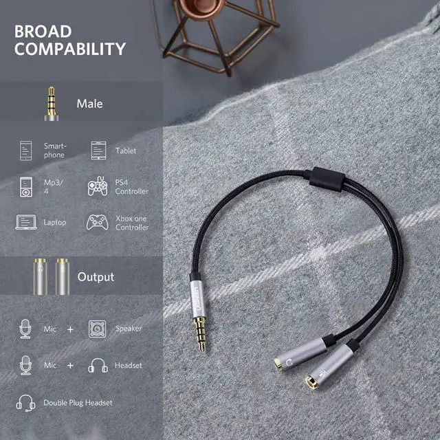 Tangle-Free Short Cable Design: With a length of 7.87 inches, this headset splitter is portable and easy to carry.