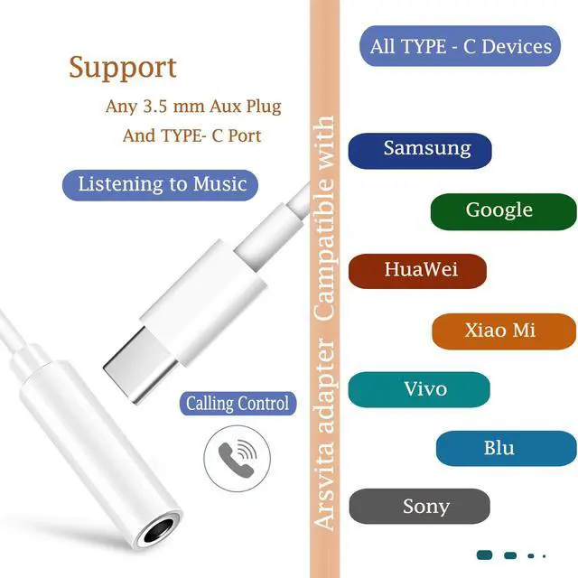 Premium Sound Quality for Music The TYPE C to 3.5mm Headphone Jack Adapter can be used to listen to music and answer or make calls. The audio cassette adapter's intelligent step-down design creates a secure connection, while its dual shielding, polished metal molding, and corrosion-resistant gold-plated plugs ensure reliable performance and minimal signal loss. Seamlessly transmits stereo audio for high-quality sound, making you enjoy your music anywhere and anytime!