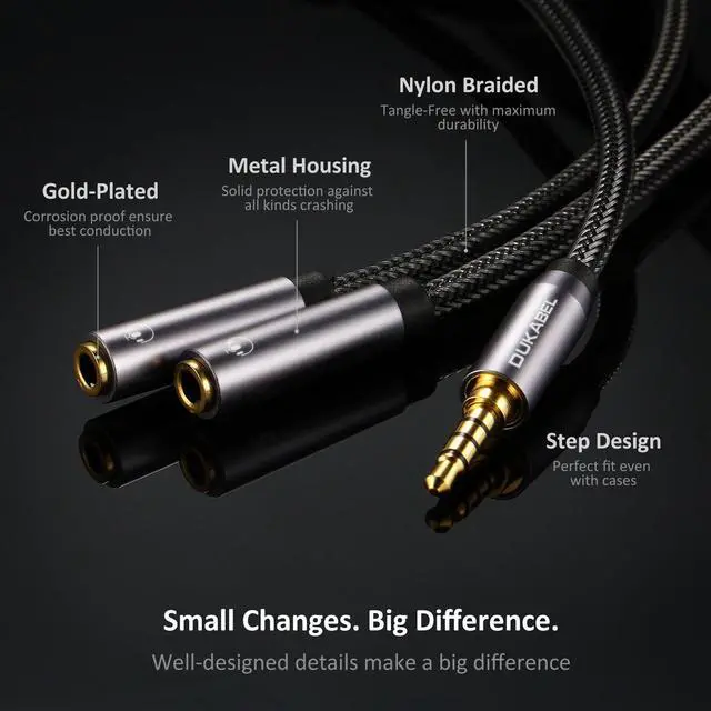 Focus On Pure Essentials: The 3.5 mm audio y splitter cable features 24K gold-plated contacts, a triple shielding jacket, a strong nylon-braided exterior, a secure-fit design, pure metal housing, and oxygen-free copper wiring to present the best quality of 3.5mm audio splitter audio cable in the market.