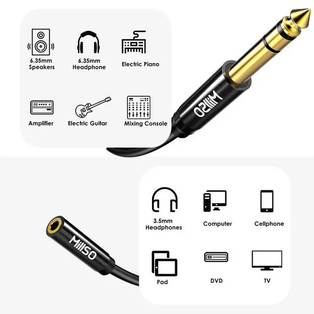Qualified Audio Adapter: The 3.5mm to 1/4 headphone adapter features high-quality connectors that ensure high stability and lossless transmission. The metal housing provides wear resistance and solid protection, while the tin-plated oxygen-free copper wiring delivers high fidelity and pure sound quality. It guarantees excellent compatibility, allowing you to connect various devices securely for an enjoyable audio experience.