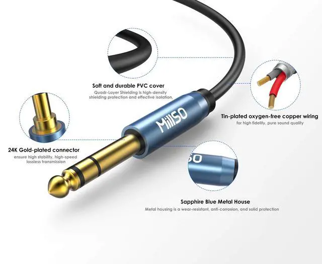 Quadruple shielding: The 6.35mm to 3.5mm adapter combines tinned copper, aluminum foil, and soft, durable PVC covers for high-density shielding protection and effective isolation, delivering a full and deli