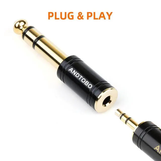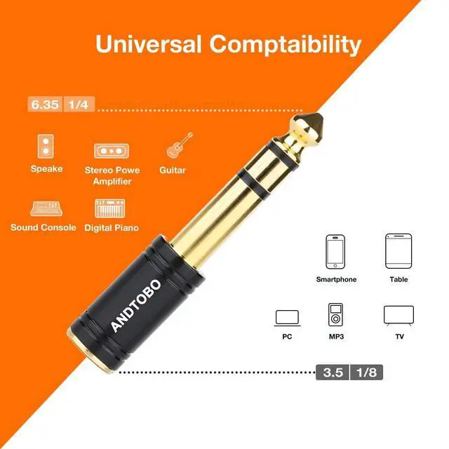 This 3.5mm female to 6.3mm male audio adapter allows you to connect your headphones or microphones with 1/8 inch plugs to audio devices such as home audio, amplifiers, guitars, and pianos with 1/4 inch stereo jacks.