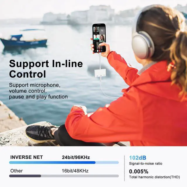 Plug and PlayThis USB C Headphone Adapter is easy to use with a fast and stable connection. Built-in high-resolution audio DAC chip supports up to 24bit/96kHz audio output. Experience high-fidelity lossless audio on your device while enjoying music and answering calls with headphones, along with volume control, pause, and play functions.