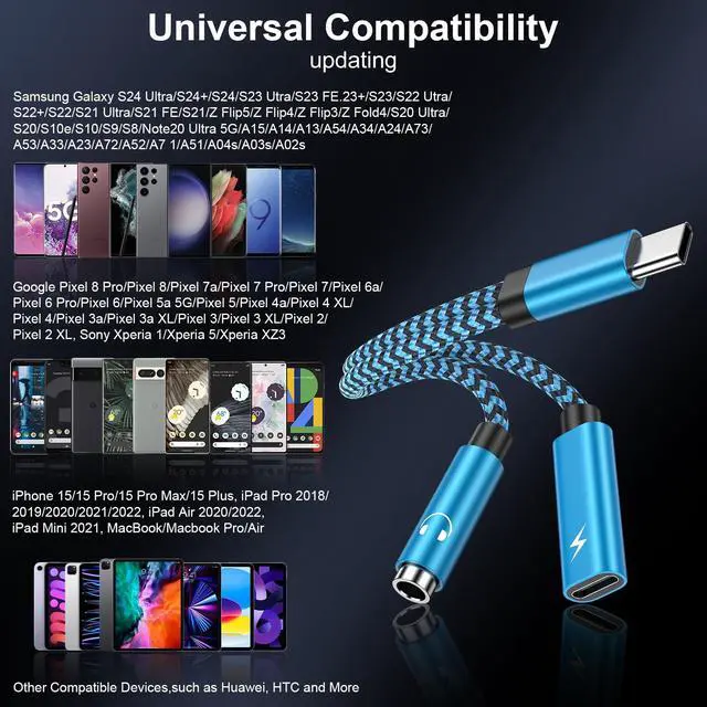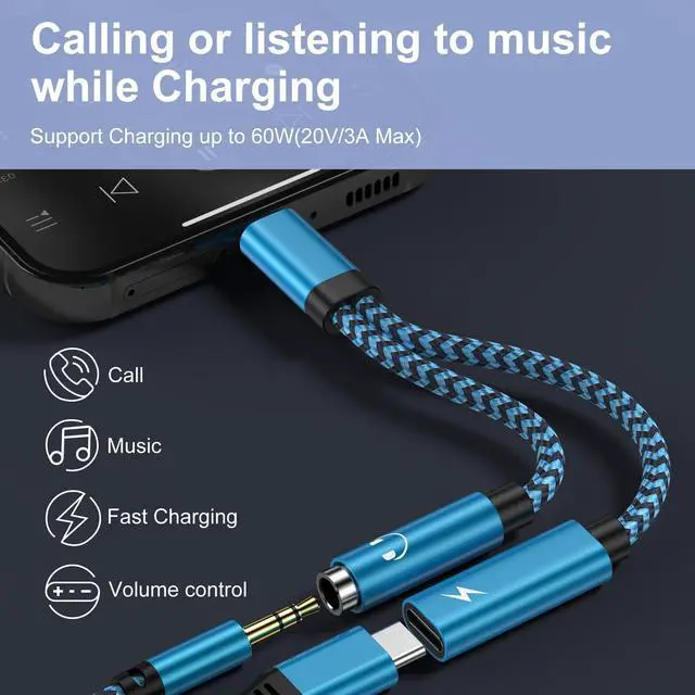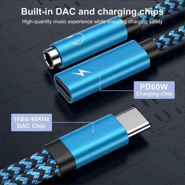 Supports Fast ChargingThis USB-C headphone adapter and charger support up to 60W PD Charging. Built-in a powerful chip satisfies different needs, ensuring the stability of charging voltage and current to protect your devices. NOTE: It may not support QC for some new phones. Suggest using a PD wall charger to get faster charging speed.