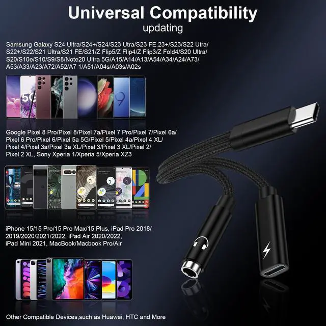 Supports Fast ChargingThis USB-C headphone adapter and charger support up to 60W PD Charging. Built-in a powerful chip that identifies the voltage and current required by different electronic products to ensure the stability of charging voltage and current, protecting your devices. NOTE: Suggest using a PD wall charger to achieve faster charging speed.