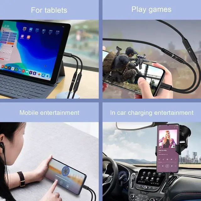 2 in 1 Audio AdapterSplits your USB-C port into a PD-compatible USB-C port and a 3.5mm audio jack, allowing you to listen to music, play games, call, or watch videos while fast-charging your device. NOTE: Does NOT support data transfer.
