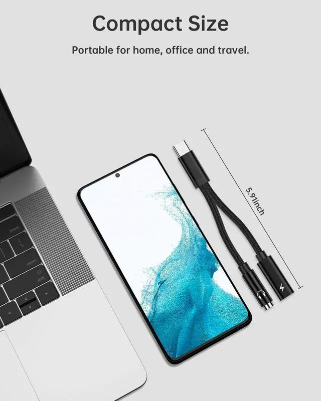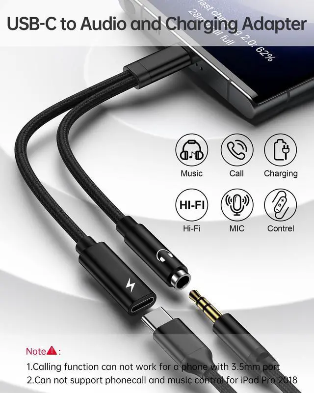 2 in 1 Multi Function - Audio and charge 2 in 1, combining a USB-C to 3.5 mm aux adapter with USB-C charging, supporting listening to music while fast charging your device.