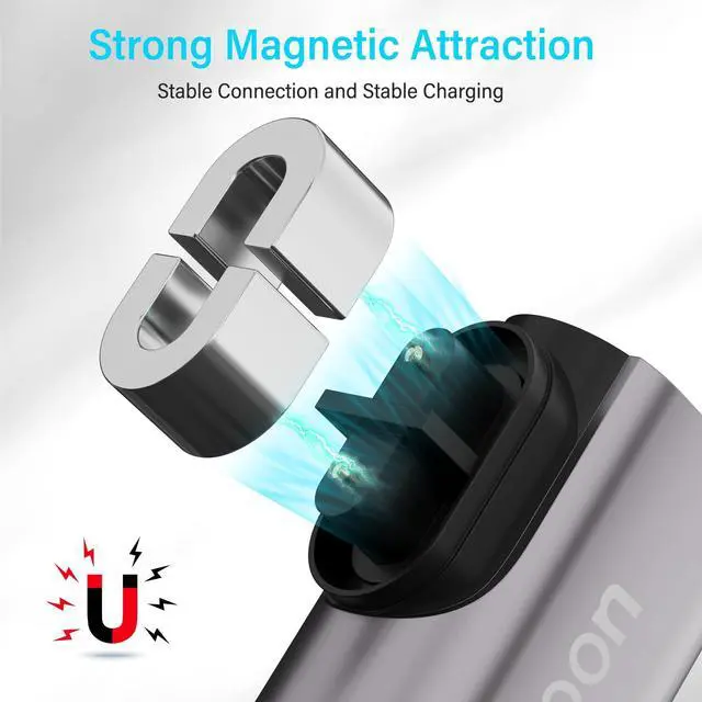 Stable Magnetic ConnectionThe charger adapter automatically adheres through magnetic force without the need for precise alignment, simplifying the connection process and reducing physical wear and tear. It easily snaps into place, fits closely with the charging port, ensuring continuous and stable charging.