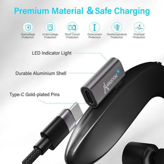 Premium Materials, Safe ChargingThe aluminum alloy casing is aesthetically pleasing and wear-resistant, while offering better heat dissipation. Gold-plated pins enhance electrical conductivity and corrosion resistance. The built-in smart chip protects your device from overvoltage and overcurrent damage during charging, ensuring safe charging for your headphones.