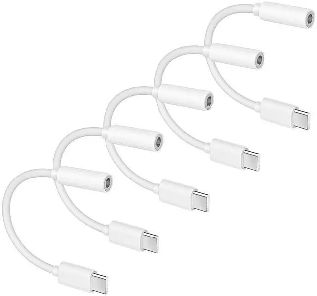 5 Pack USB C to 3.5mm Headphone Jack Adapter Type C Audio Aux Cable Dongle Compatible with iPhone 16/15/15 Plus/15 Pro/15 Pro Max/iPad/Pixel, Galaxy S23 S22 S21 S20 Ultra Z Flip/Note(White)