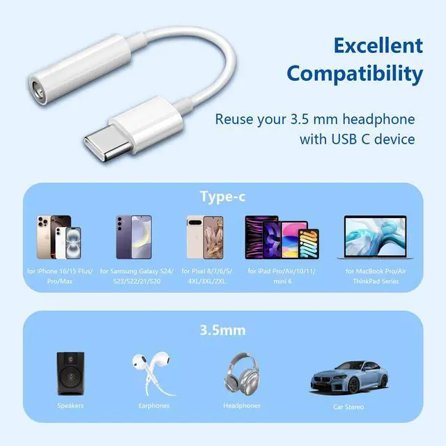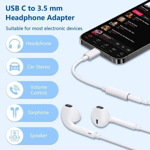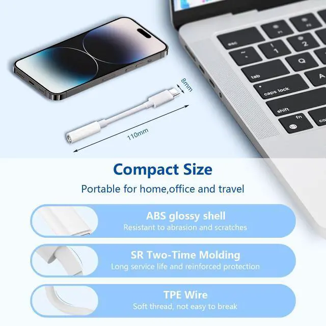 Multi-function DongleThis compact usb c to aux adapter can connect your usb c devices without audio jack to headphones, headsets, speakers, and other audio devices. This portable usb c to 3.5mm audio adapter allows you to listen to music and answer phone calls with your headphones and supports wire control functions, such as microphone and volume control, pause and play functions.