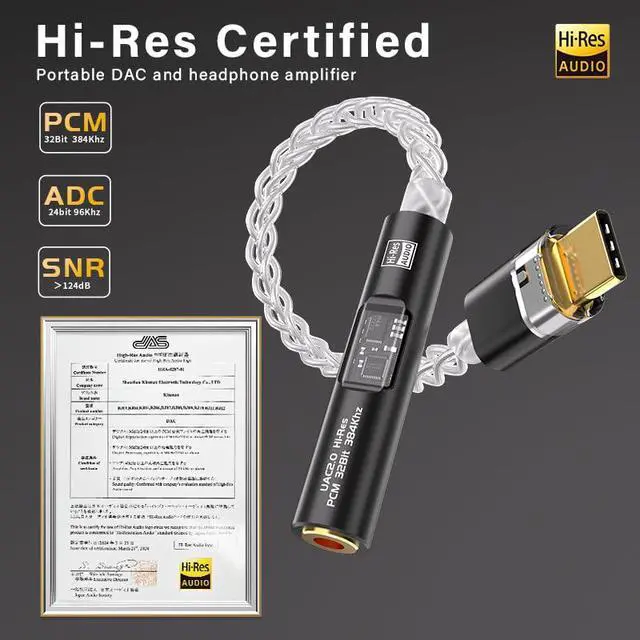 Hi-Res Certified: This adapter is Hi-Res certified, making it an excellent choice for audiophiles and those with special requirements for sound quality. This USB to 3.5mm headphone jack adapter features an advanced DAC chip with low power consumption, excellent and stable decoding performance, and maximum support for 32bit/384KHz audio sampling rate, offering high-definition audio and powerful noise reduction.