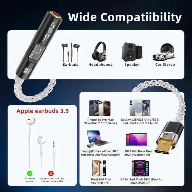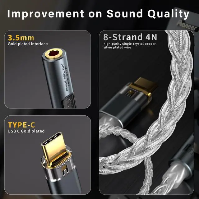 More Everlasting Durability: The 8-Strand 4N Single Crystal Copper Silver-Plated Upgraded Cable USB C DAC Adapter is robust in build quality. The aviation-grade aluminum alloy casing material prevents scratches and rust, ensuring higher quality. Slim and portable, it's easy to c