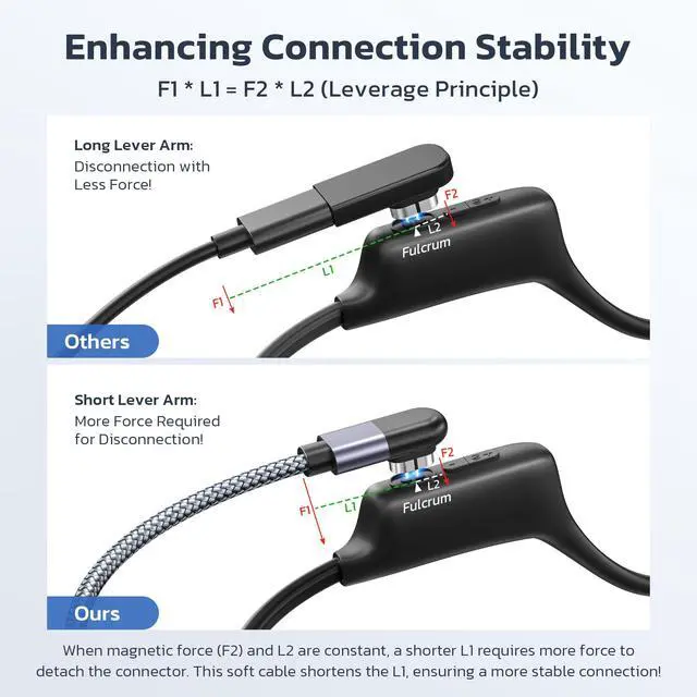 Excellent Short Cable Adapter Design: With a 90-degree angle connector and nylon braided cable, this adapter is both convenient and durable! The soft cable shortens the lever arm, requiring more force to detach from the charging port, ensuring a more stable connection!