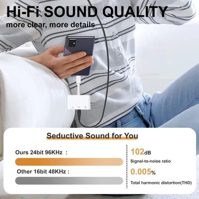 USB C TO 3.5MM AUDIO ADAPTER - This audio adapter is easy to use with plug-and-play capability, providing fast and stable connections. It allows you to listen to music and answer calls with headphones while supporting volume control, pause, and play functions. With a built-in high-resolution audio DAC chip, it supports up to 24bit/96kHz audio output for a high-fidelity, lossless audio experience.