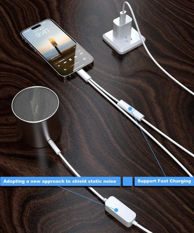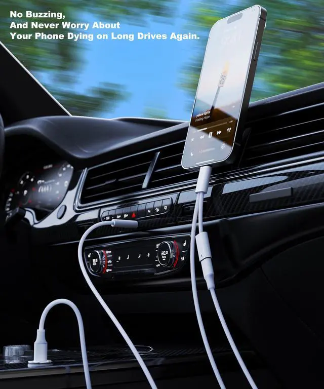 1 Charge & Play Simultaneously: Never choose between music and battery life again! Our USB C to 3.5mm male cord features a USB-C female port + 3.5mm male design, letting you plug into your cars AUX port and charge your phone via USB-C cable. Perfect for road trips, daily commutes, or gym sessionsno more battery anxiety!