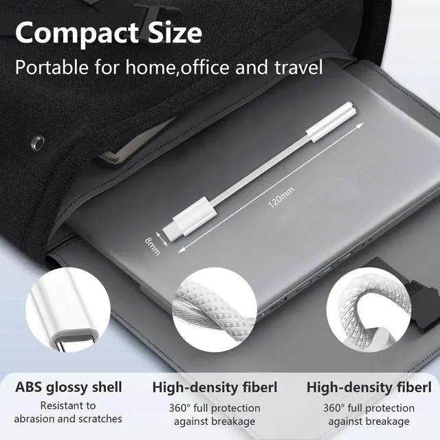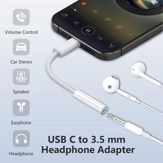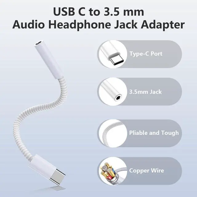 Multi-function DongleThis compact USB-C to AUX adapter can connect your USB-C devices without an audio jack to headphones, headsets, speakers, and other audio devices. This portable USB-C to 3.5mm audio adapter enables you to listen to music and answer phone calls with your headphones, supporting wire control functions such as microphone, volume control, pause, and play functions.