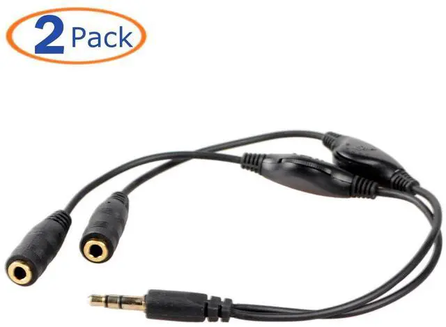 One end features a male 3.5mm plug, and the two ends have 2 female 3.5mm jacks.