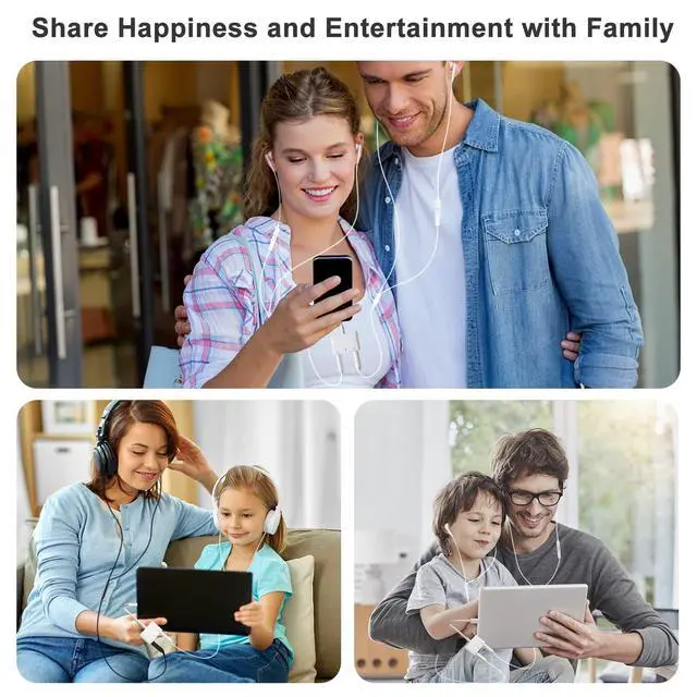 Upgrade Design This 3 in 1 headphone splitter supports dual 3.5mm earphones working at the same time, allowing lovers, good friends, and families to share happiness and entertainment.