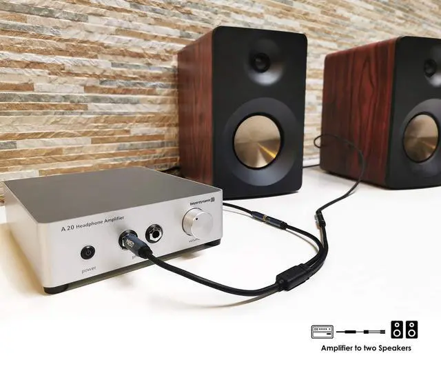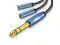 This 1/4 to dual 1/8 adapter features two 3.5mm female jacks connecting to a 6.35mm male plug, making it perfect for linking audio devices with a 6.35mm stereo jack to headphones or speakers equipped with standard 3.5mm plugs. It can be used to connect a piano keyboard to two headphones, a guitar amp to dual speakers, an amplifier to double headphones, or an amplifier to a speaker.
