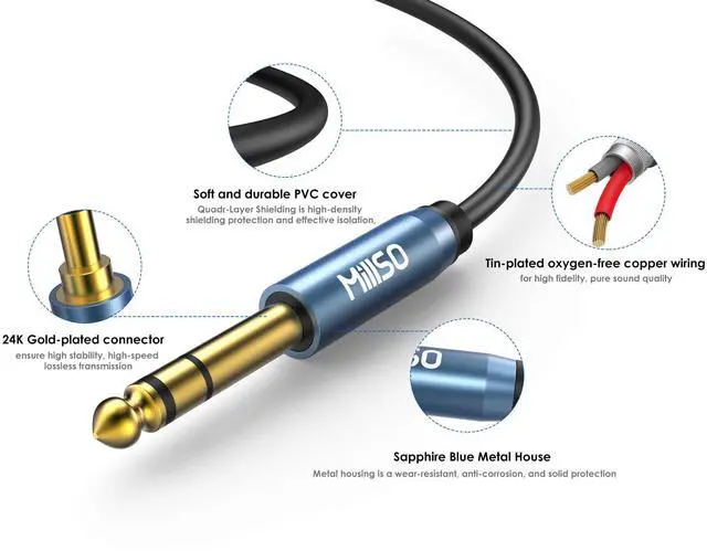 Quad-Layer Shielding: The dual 3.5mm to 1/4 headphone adapter is constructed with tinned coppers, aluminum foil, and durable PVC covers, providing high-density shielding protection and effective isolation, delivering a full and delicate tone with restored sound quality. This audi