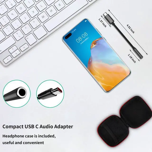 Durable USB C to 3.5mm Female Adapter: This USB C to aux dongle is made with a robust and flexible braided outer layer for long-lasting use. A premium hard shell prevents scratches and rust, and it comes with a handy headphone carrying case for easy and convenient storage without tangling.