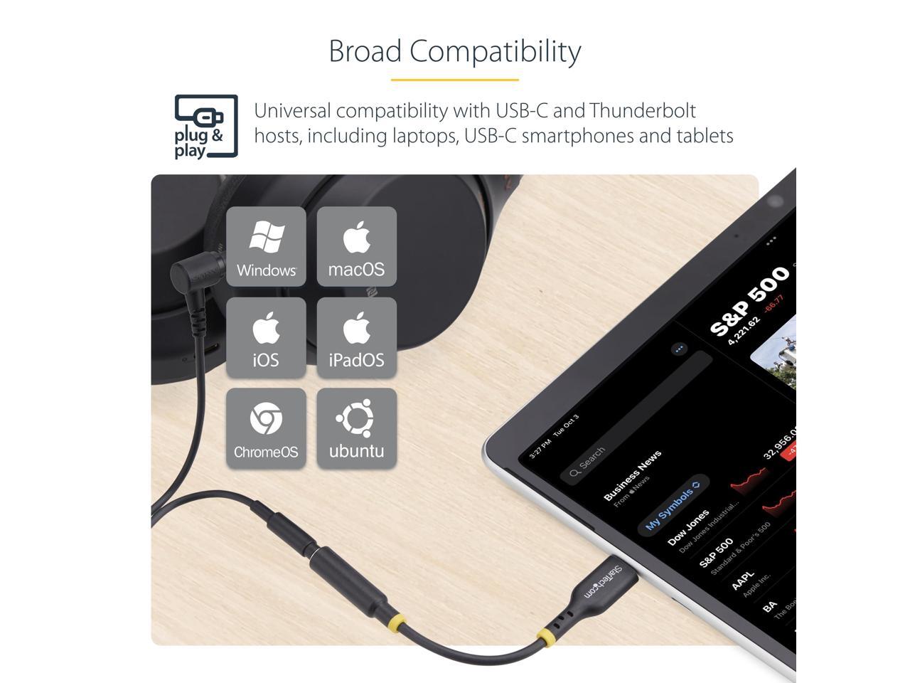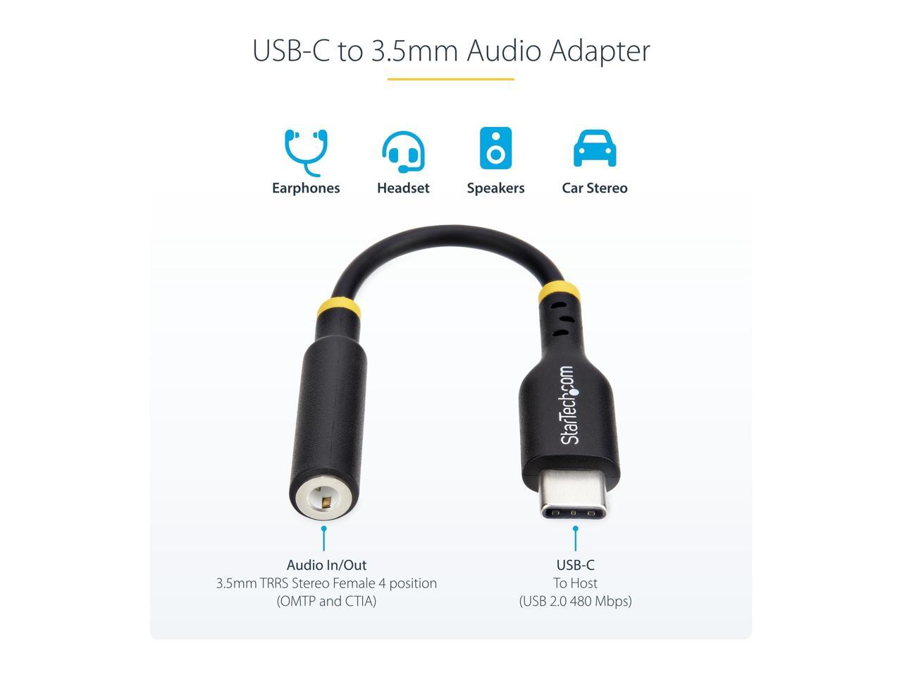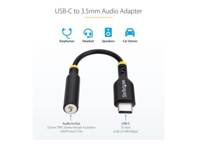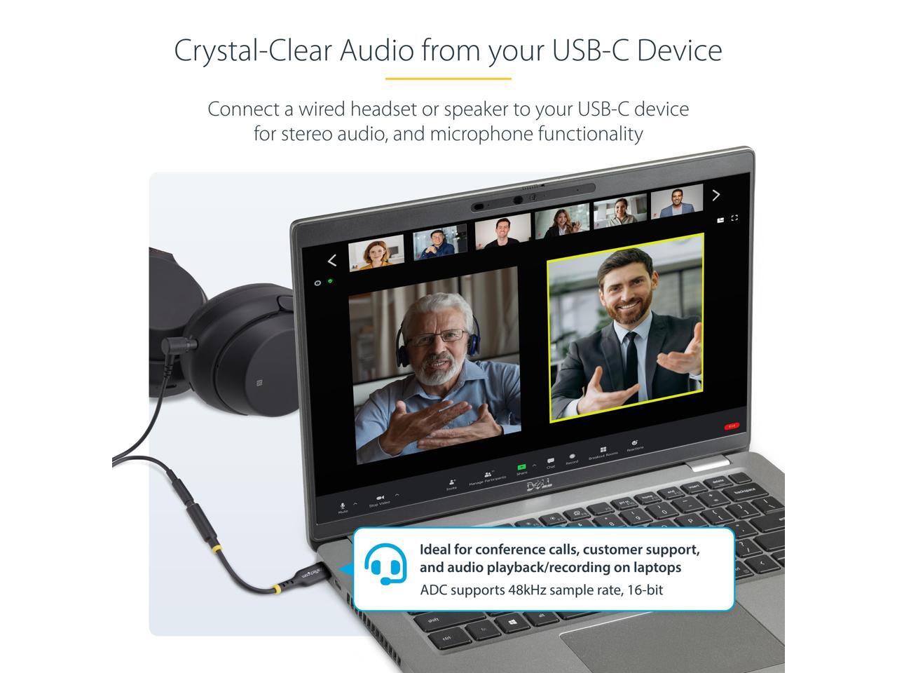 StarTech 5in (12.7cm) USB-C to 3.5mm TRRS Headphone/Headset Jack Audio Adapter, USB Type-C Aux Dongle, 32-bit DAC, Supports USB-C/Thunderbolt, Laptop/Phone/Tablet Model USBCAUDIO2
